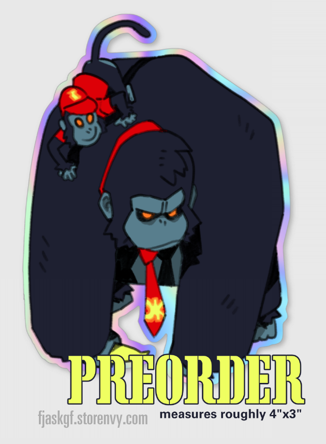 everyone's favourite apes, looking a little darker than usual. holographic sticker!